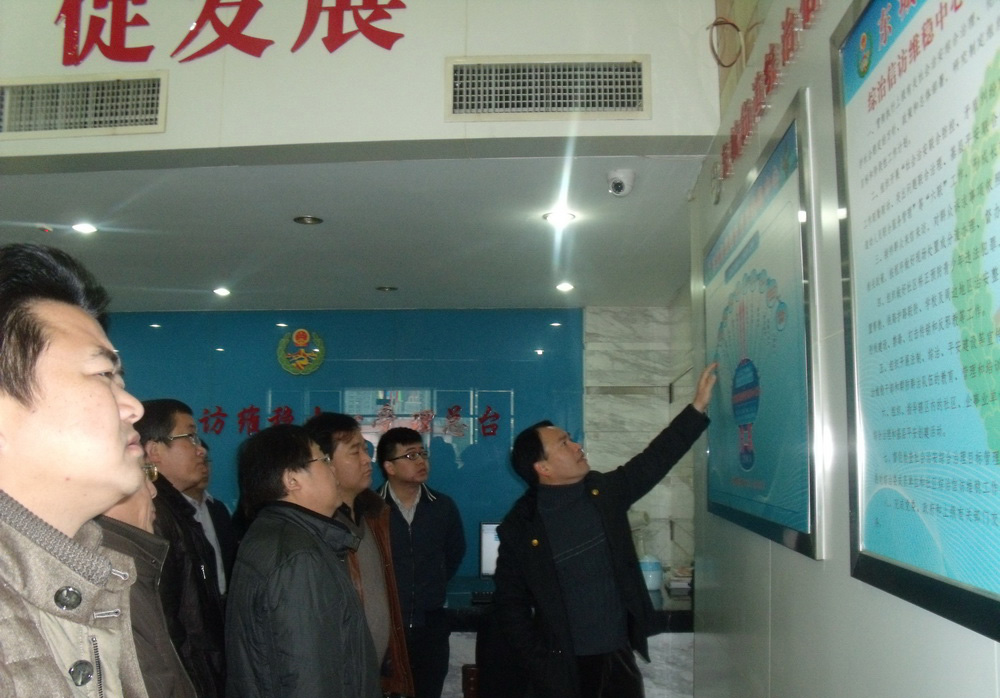 一行人参观了东莞市东城街道办综治信访维稳中心,并考察了我公司在该街道办安装并已经运行两年多的综治维稳信息管理平台